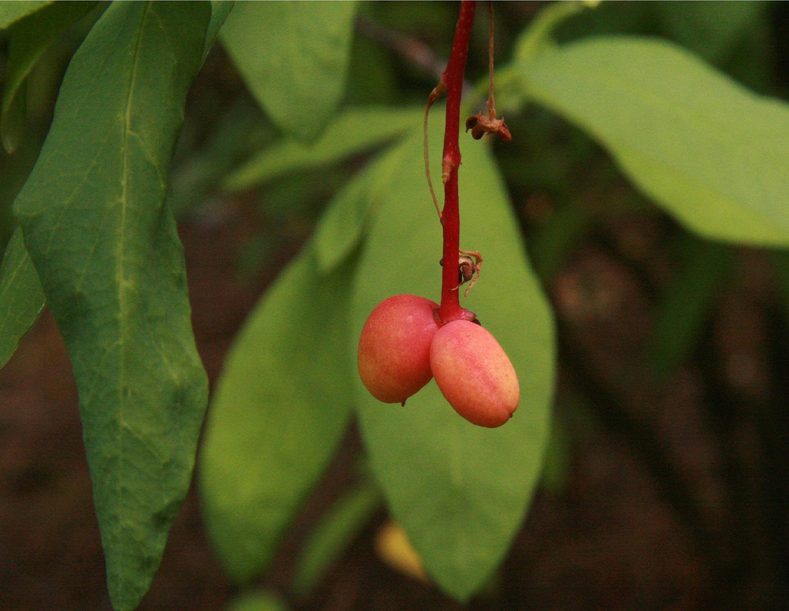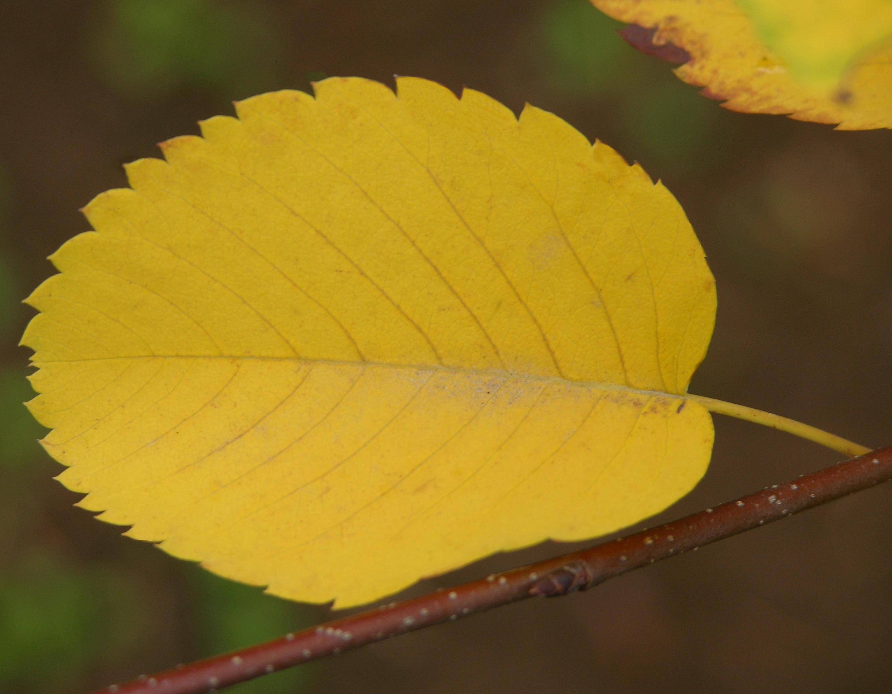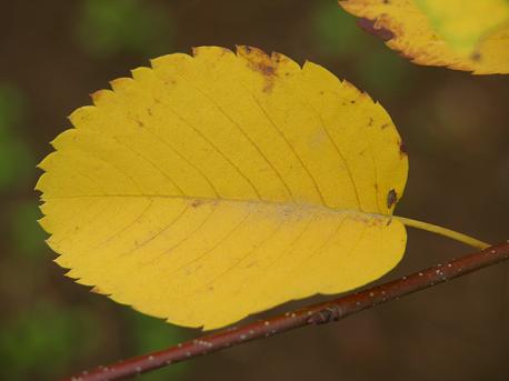 One would think the lovely blooms and delicious fruit would be enough of a gift from these trees, but in autumn the oval or oblong shaped leaves, 2-5 inches long and 1-2 inches wide, turn to wondrous shades of yellow-orange to reddish purple before they fall to carpet the ground beneath. In winter the overall rounded shape of the branches are pleasing to the eye with their gray to black coloration until the new red-brown twigs start the cycle anew come spring. The bark itself is interesting, tightly holding the trunk(s) and branches, it has very distinctive vertical lines. It becomes more scaly as the tree matures. |