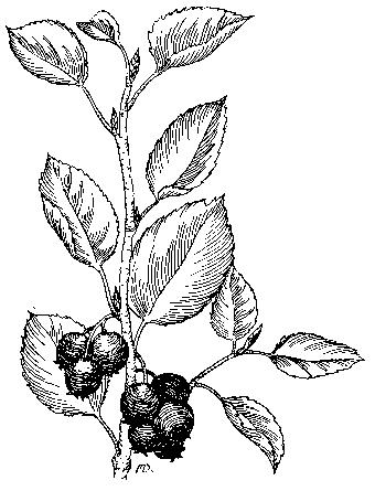 Native peoples gathered and dried the fruit for winter use, either dried whole or cooked to a jam-like form before being dried into what today is known as "fruit leather." They used the juice to soak roots of other plants make them more flavourful and sweeter. Modern taste buds may consider the berries too sweet, but they were prized by early travelers, explorers and miners as a wonderful change to their usual more bland fare. People all over the world truly love the Serviceberry wherever it's grown. The Saskatchewan, Canada city of Saskatoon was named by early settlers because the site had many saskatoon berry bushes, or trees. In Maryland, Ellicott City chose the Serviceberry as it's official tree for their bicentennial-plus-25 celebration. Origin of botanical name, original discovery info, etc.: Although the origin of the name Amelanchier remains unclear, we do have clues about it's meaning. The species name alnifolia means alder-leaved. Since the flowers bloom at the same time that shad travel the coastal streams to spawn, we see the common name of Shadbush or Shadblow evolved naturally. Other folk tales say that the name "serviceberry" came because the plants bloomed at the same time circuit riding preachers traveled through the mountains, conducting their services and the flowers were traditionally collected to decorate the churches. |