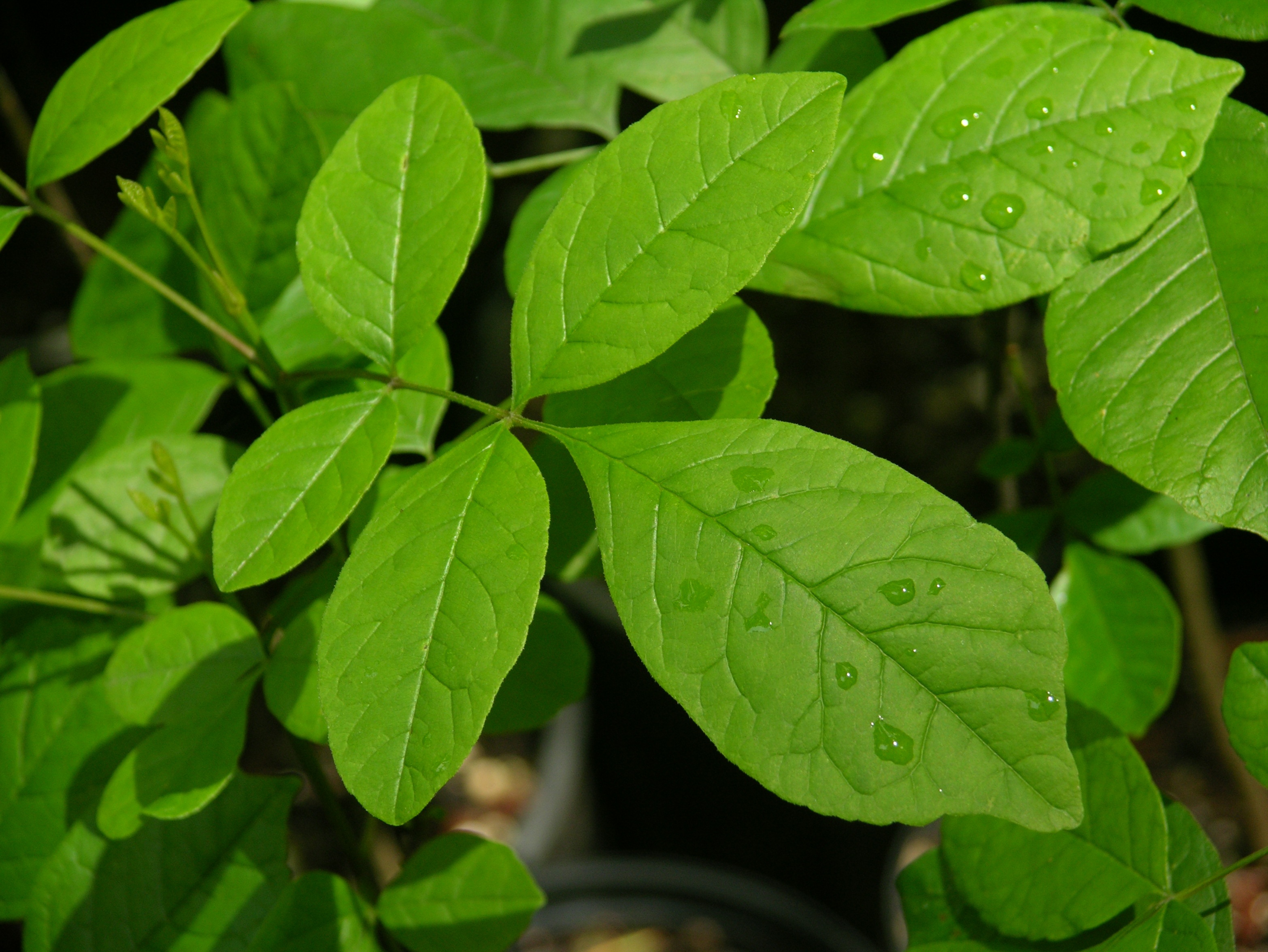 This beautiful member of the olive family is found in riparian areas, often alongside Black Cottonwood, willows and Red Alder. It is an excellent species for reclamation projects. Native to coastal Washington and Oregon and the mountain ranges of California, it is hardy to USDA zones 6-9. At full maturity, Oregon Ash reaches 40 – 80,’ with stiff branches and long axils of 5-9 small leaflets. In fall the leaves turn yellow. Oregon ash prefers full sun and a moist site but it will tolerate some shade and seasonal flooding. The photo below, center, is by Jean-Pol GRANDMONT. |
