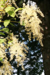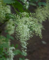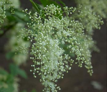 Plant Brief: A beautiful deciduous shrub that grows to 20' in the wild - can be kept to 10' in the garden by pruning (the trimmings add character to bouquets). Pendants of creamy white flowers, whose fragrance improves with age, form in early summer and persist through fall and winter. This plant is sometimes referred to as "Ironwood," a reference to the incredible strength of the wood. Indeed the wood was carved into spikes and used as nails are now. Oceanspray prefers full sun and is found on dry, rocky slopes from southern BC to California and east to Montana (USDA zones 5-10). |