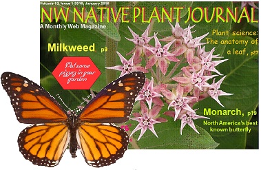 Our Journal can be viewed right from the web, you can download it to your computer or you can print a copy and enjoy it in the comfort of your easy chair or on your coffee break. You'll find fresh articles about Northwest Native plants, tips for propagation, things to do in your garden right now, and surprises every issue. This may become your favorite gardening resource. How about making a special binder for your printed copies? Something good to read and very handy for future reference. We've published this Journal in "pdf" form and you'll need the free Adobe Acrobat Reader to view, save or print it. Click on this link to get this handy program: Get Adobe Reader. We chose the Reader style because it makes viewing quick, it's easy to use, and thanks to Adobe it's entirely free. At right is our latest issue. Please to enjoy. |